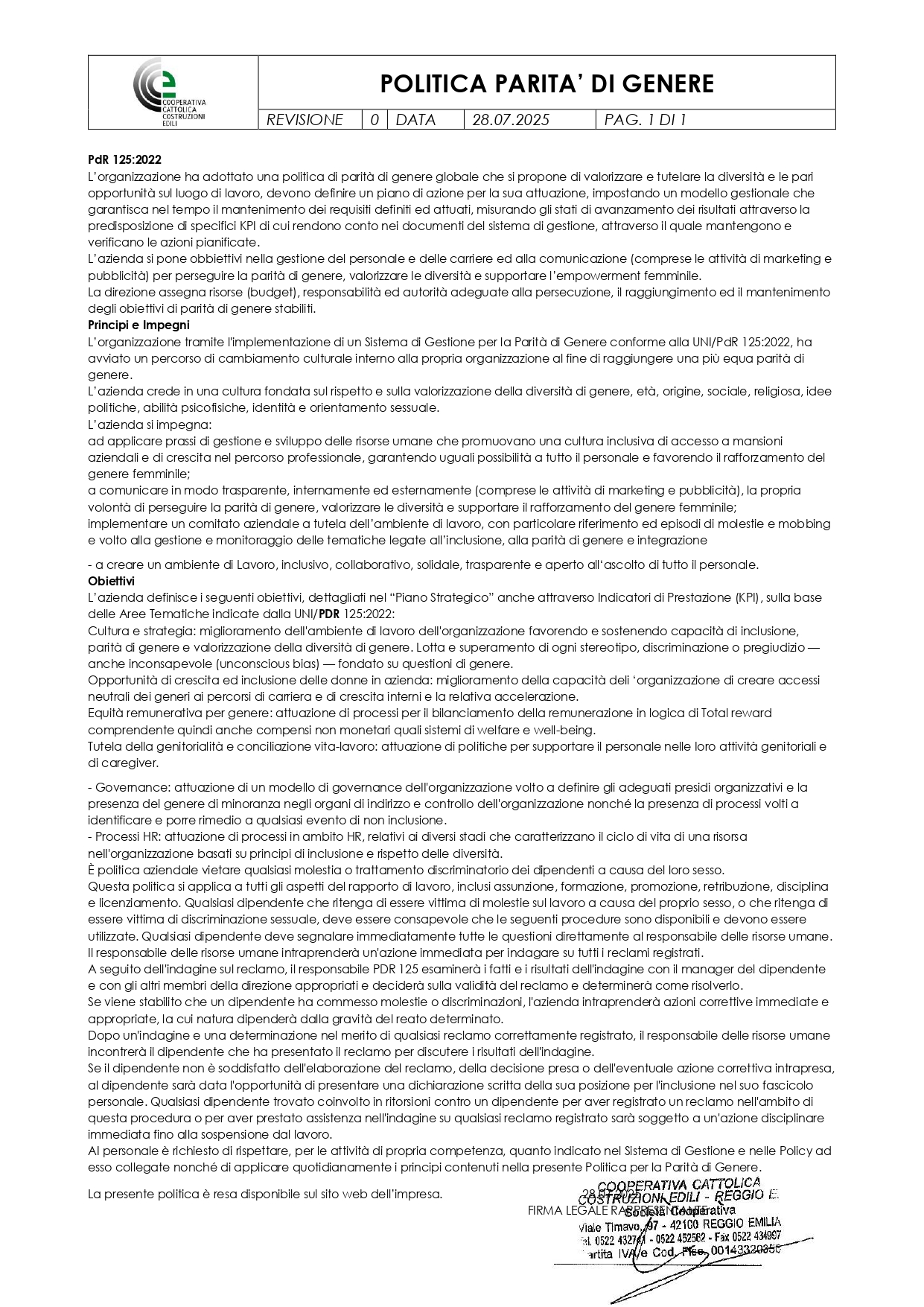 È certificata UNI EN ISO 9001:2015, UNI ISO 45001:2018 e UNI EN ISO 14001:2015.
